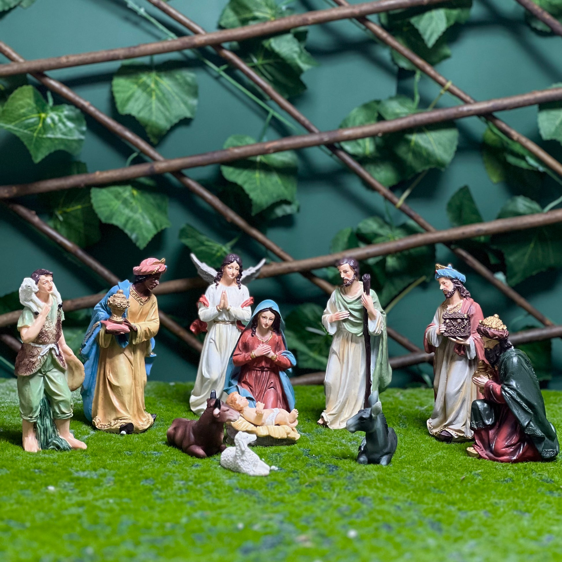 This beautifully crafted Nativity set features 15 cm figurines, offering a compact and elegant size perfect for small spaces. Its medium-height design makes it ideal for shelves, desks, prayer corners, reception areas, and under-the-tree setups. Despite its small footprint, it maintains strong visibility and detail.