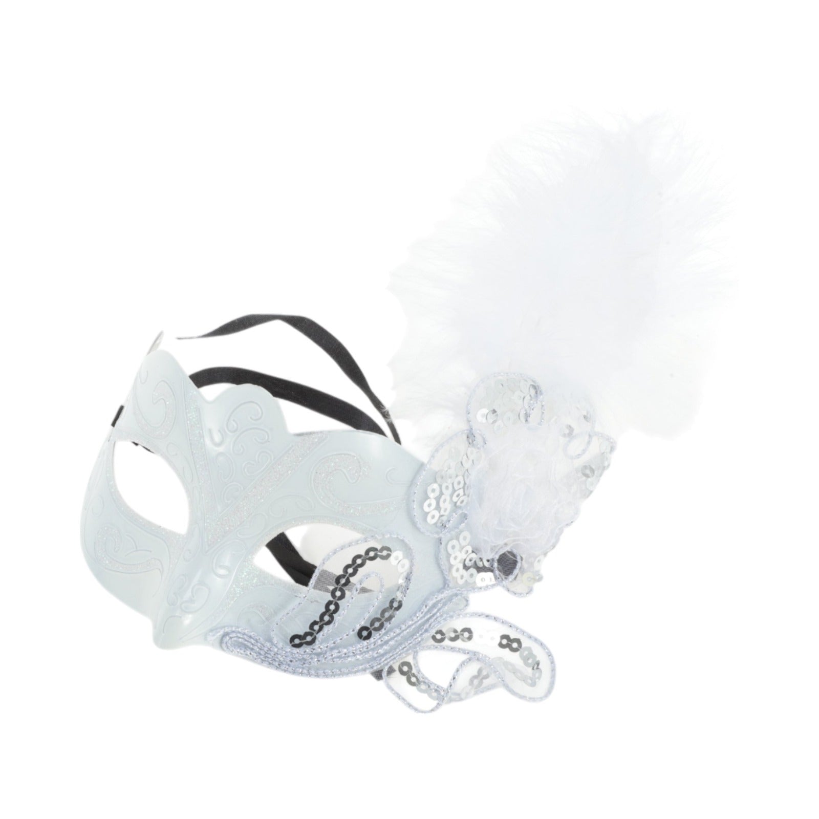 Create an elegant and mysterious look with this white feather masquerade eye mask. Designed with subtle glitter detailing, sequin accents, and a soft feather embellishment, this mask adds a refined touch to masquerade parties, themed events, costume celebrations, and New Year gatherings. Lightweight and comfortable to wear, it features an adjustable strap for a secure fit. Ideal for adults, photo sessions, and festive occasions across the UAE.